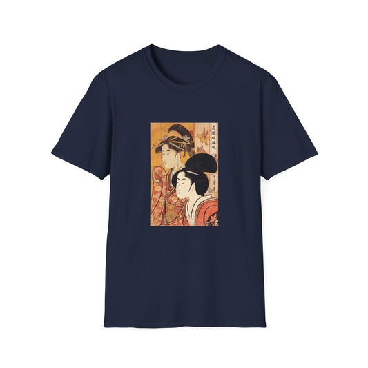 Two Beauties with Bamboo by Kitagawa Utamaro Famous Japanese woodblock print T shirt