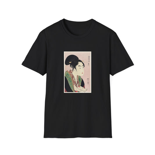 The Courtesan Hanaogi of the Ogiya Brothel (Ogiya no uchi Hanaogi) T shirt from famous Japanese woodblock print