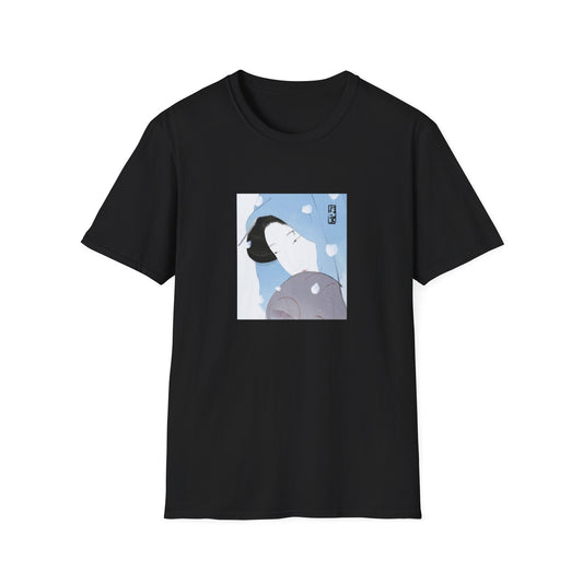 Japanese woman under snow (1923) vintage woodblock prints by Kitano Tsunetomi T shirt from famous Japanese woodblock print