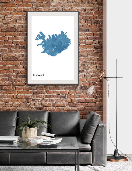 Iceland modern minimalist map print of Quality colourful poster of Iceland on quality art pape
