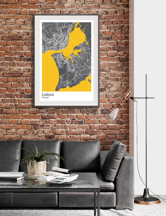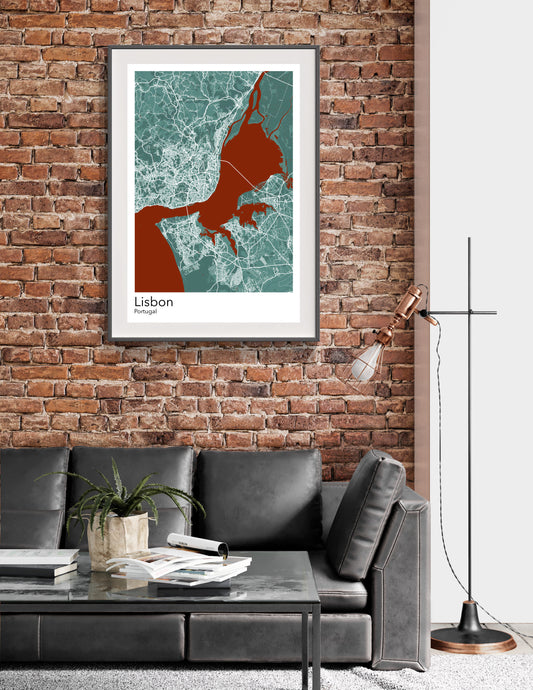 Lisbon modern minimalist map print of Quality colourful poster of Lisbon Portugal on quality art paper