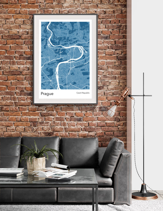 Prague modern minimalist map print of Quality colourful poster of Prague Czech Republic on quality art paper