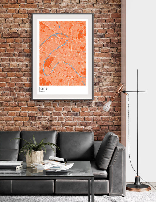 Paris modern minimalist map print of Quality colourful poster of Paris France on quality art paper