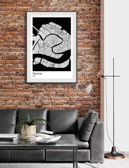 Venice black print A modern minimalist map print of Quality colourful poster of on quality art paper