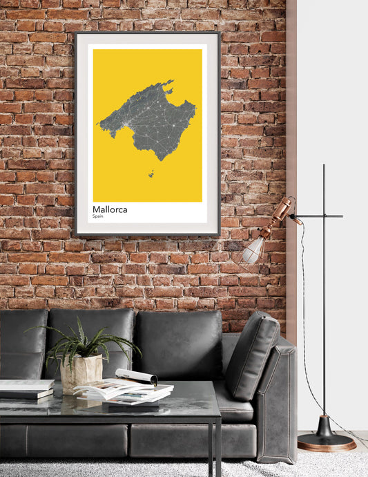 Mallorca modern minimalist map print of Quality colourful poster of Majorca Spain on quality art paper