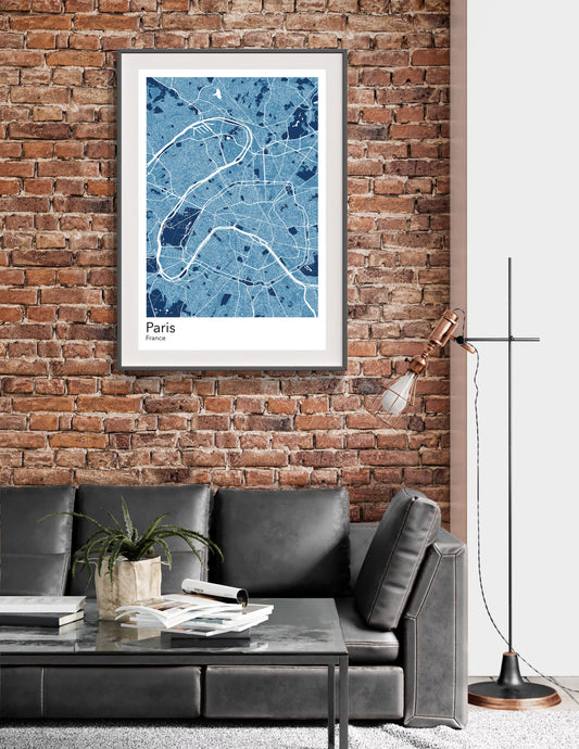 Paris modern minimalist map print of Quality colourful poster of Paris France on quality art paper