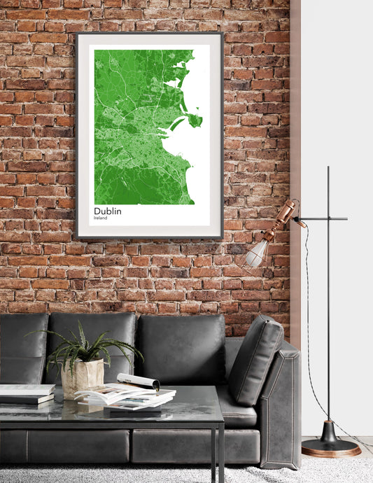 Dublin green print A modern minimalist map print of Quality colourful poster of on quality art paper