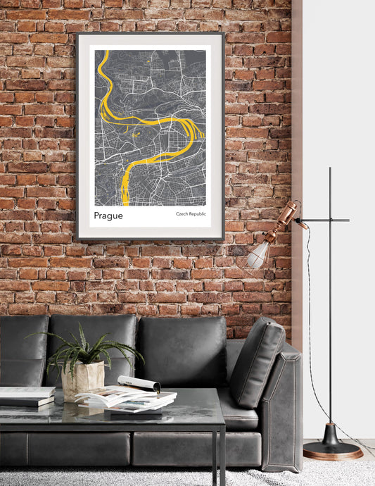 Prague modern minimalist map print of Quality colourful poster of Prague Czech Republic on quality art paper