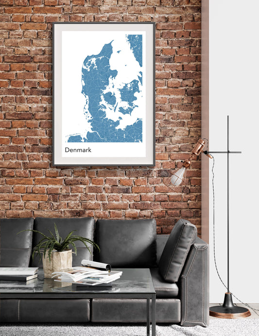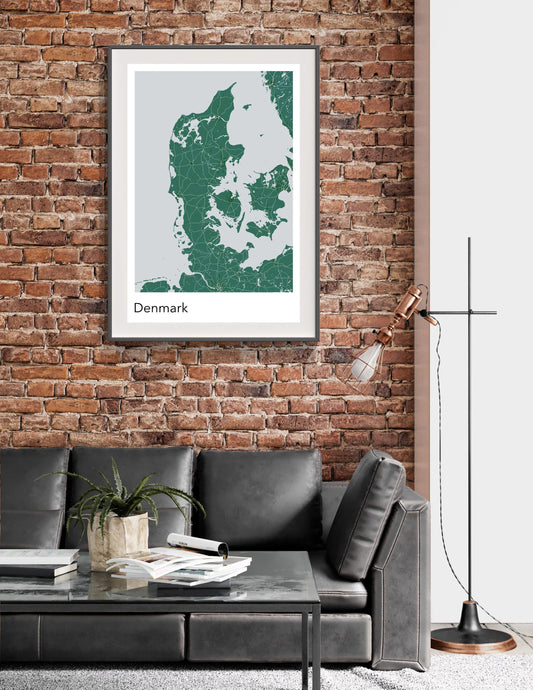 Denmark modern minimalist map print poster. Quality colourful poster of Denmark on quality art paper