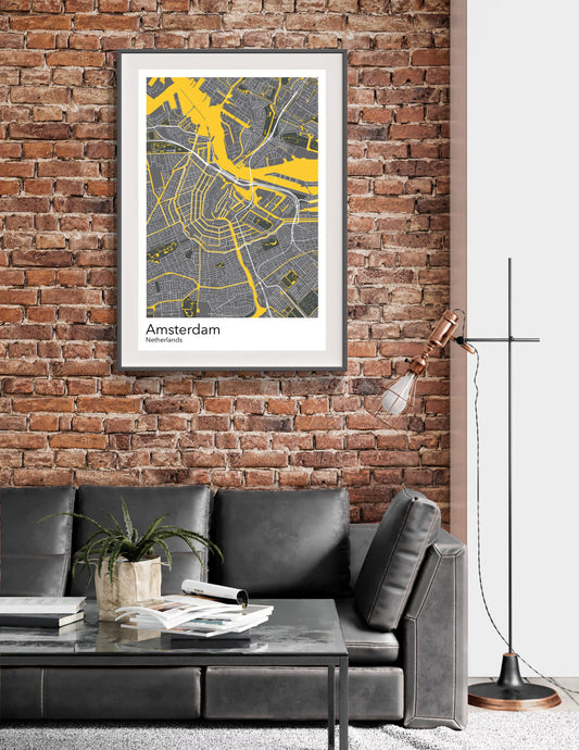 Amsterdam modern minimalist map print poster. Quality colourful poster of Amsterdam The Netherlands on quality art paper