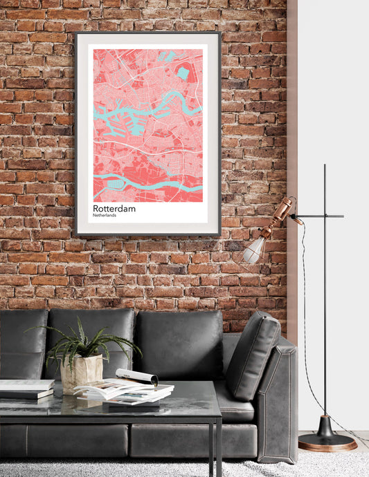 Rotterdam modern minimalist map print poster. Quality colourful poster of Rotterdam Netherlands on quality art paper
