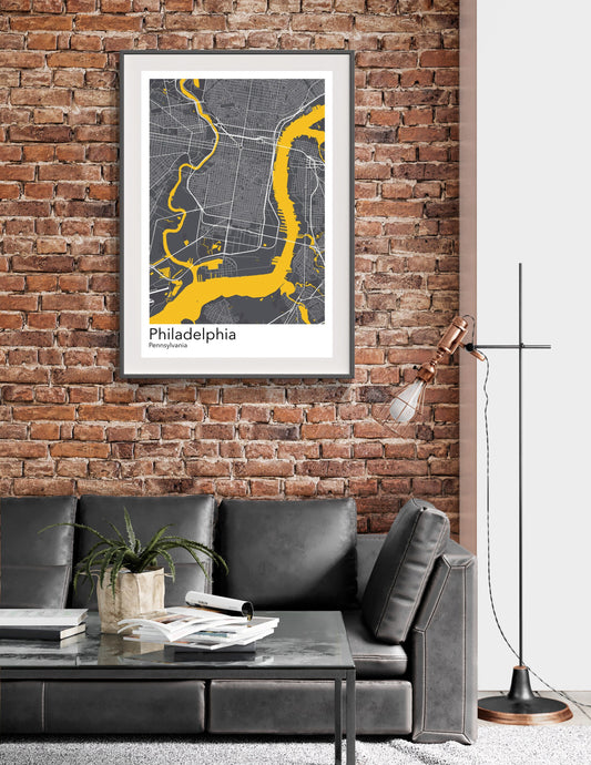 Philadelphia modern minimalist map print poster. Quality colourful poster of Philadelphia on quality art paper
