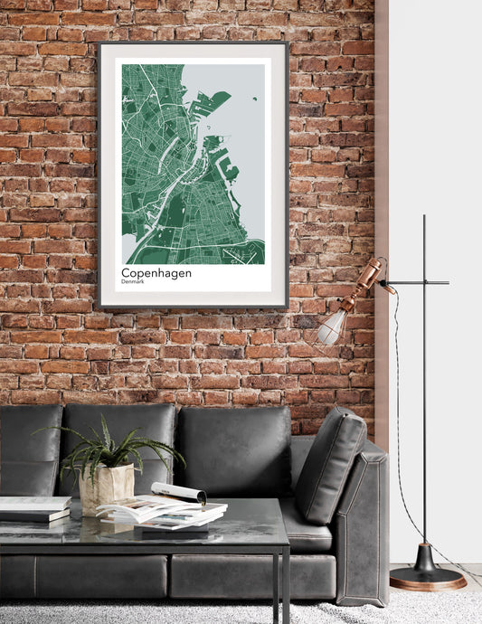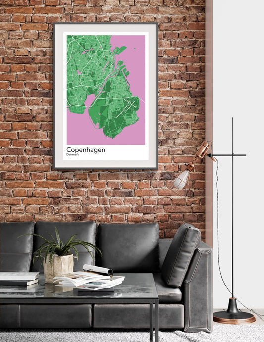 Copenhagen modern minimalist map print poster. Quality colourful poster of Copenhagen Denmark on quality art paper