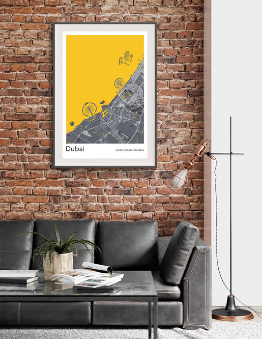 Dubai modern minimalist map print poster. A colourful poster of Dubai United Arab Emirates on quality art paper