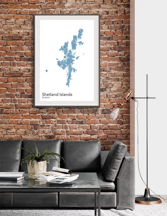 Shetland Islands modern minimalist map print poster. Quality colourful poster of Shetland Islands in Scotland on quality art paper