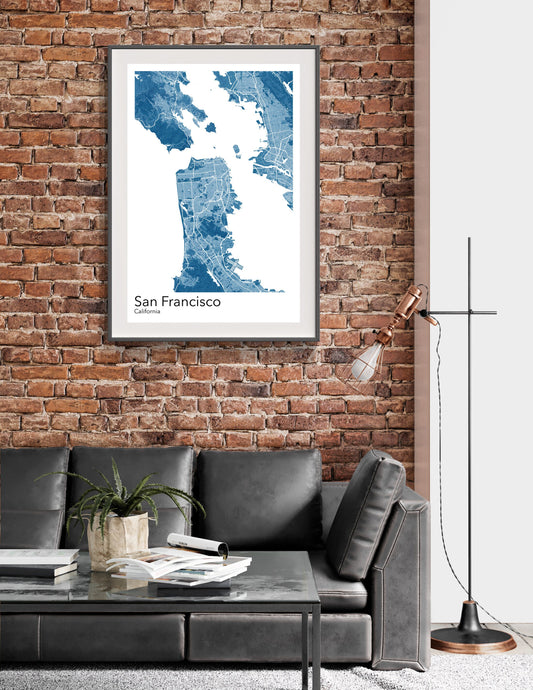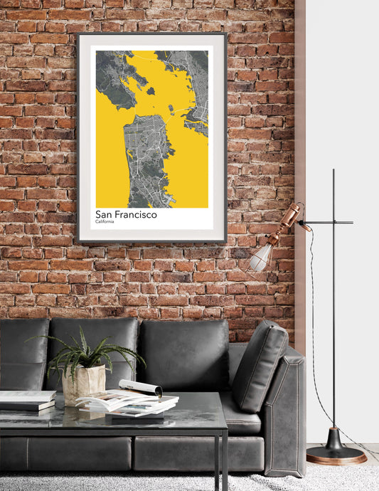 San Francisco modern minimalist map print poster. A colourful poster of San Francisco California on quality art paper