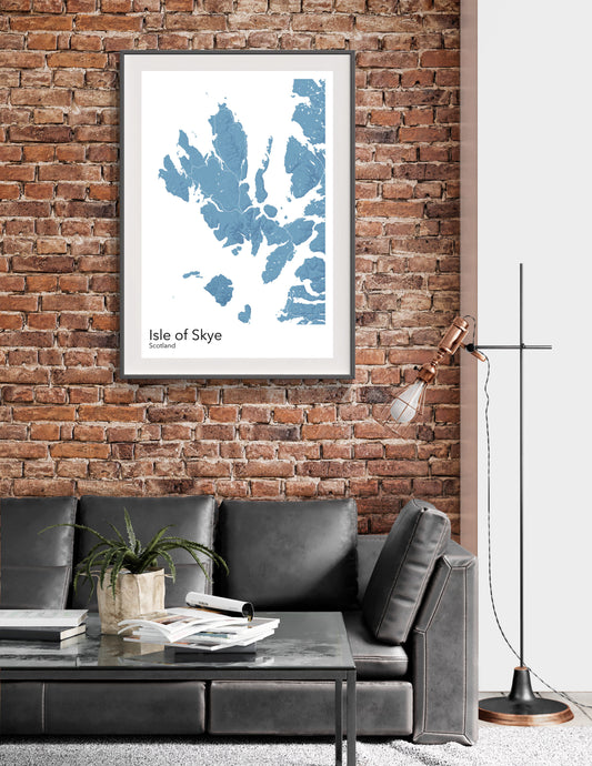 Isle of Skye modern minimalist map print poster. Quality colourful poster of Skye in Scotland on quality art paper