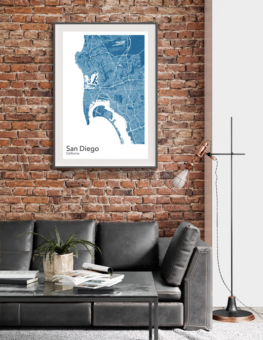 San Diego modern minimalist map print poster. A colourful poster of San Diego California on quality art paper
