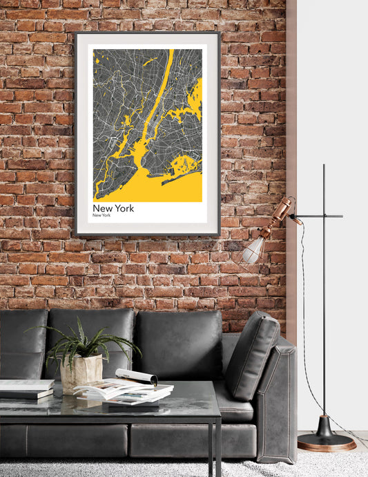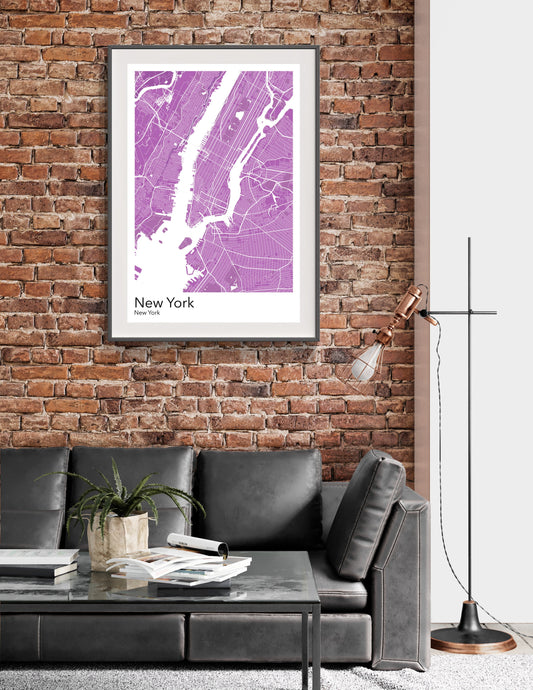 New York City modern minimalist map print poster. Quality colourful poster of New York City Manhattan on quality art paper