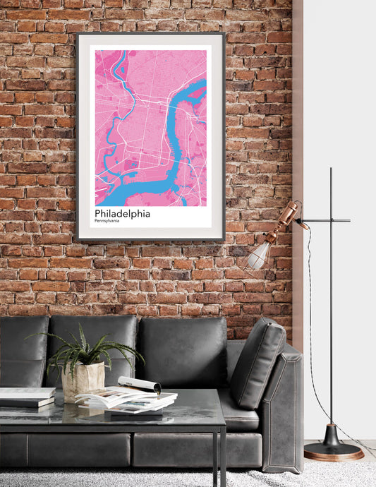 Philadelphia modern minimalist map print poster. Quality colourful poster of Philadelphia on quality art paper