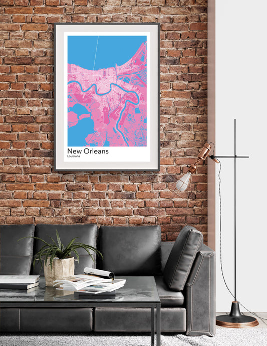 New Orleans modern minimalist map print poster. Quality colourful poster of New Orleans Louisiana on quality art paper