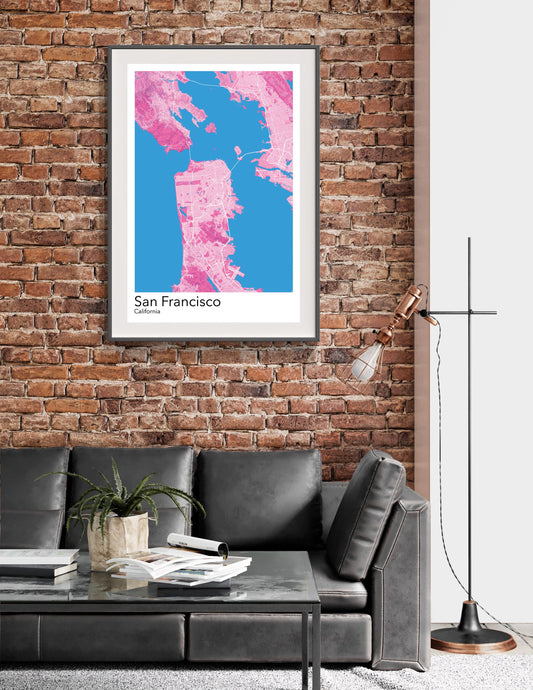 San Francisco print modern minimalist map print poster. Quality colourful poster of San Francisco California on quality art paper