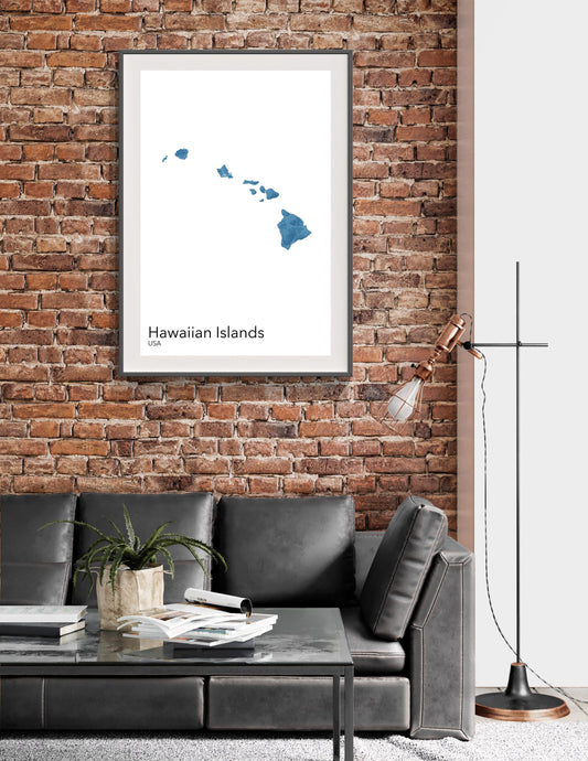 Hawaii modern minimalist map print poster. Quality colourful poster of Hawaiian Islands on quality art paper