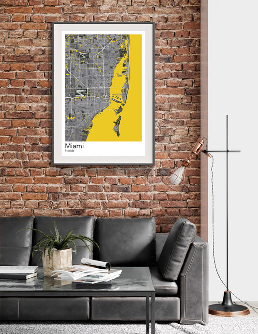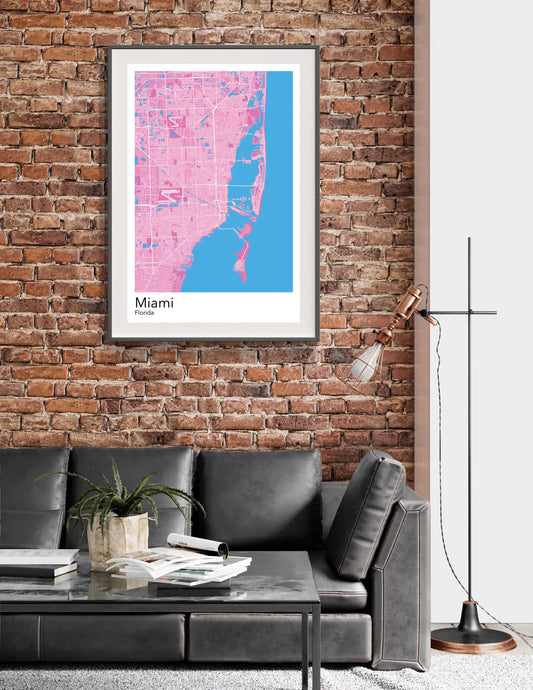 Miami modern minimalist map print poster. Quality colourful poster of Miami Florida on quality art paper