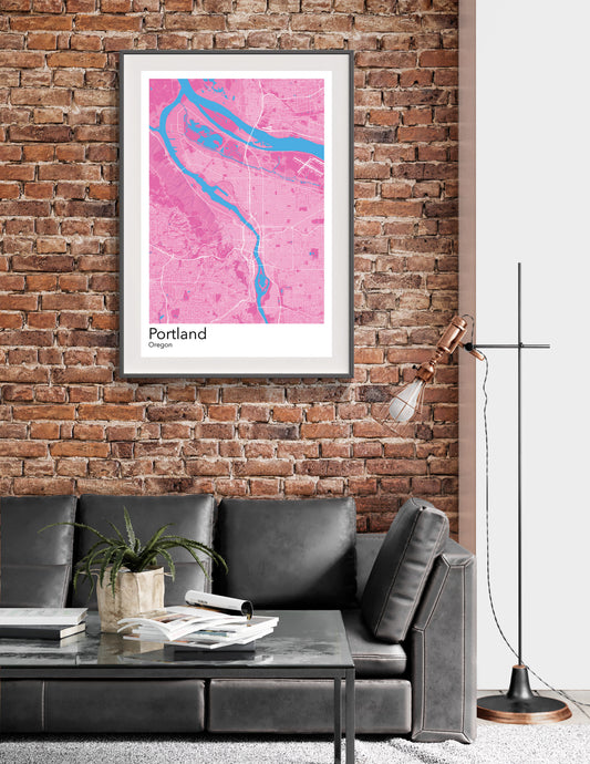 Portland modern minimalist map print poster. Quality colourful poster of Portland Oregon on quality art paper