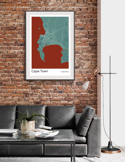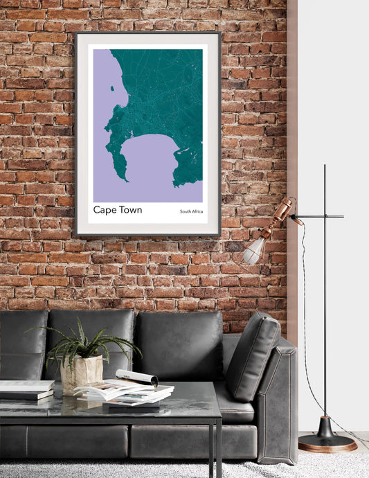 Cape Town modern minimalist map print poster. Quality colourful poster of Cape Town South Africa on quality art paper