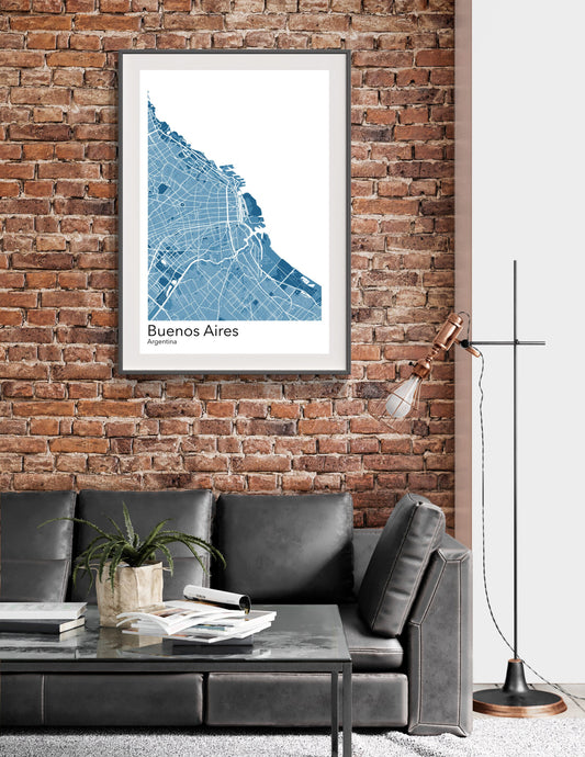Buenos Aires modern minimalist map print poster. Quality colourful poster of Buenos Aires Argentina on quality art paper