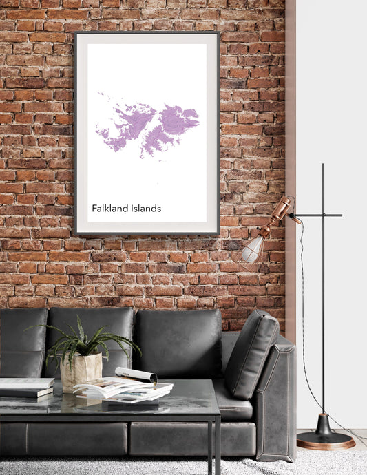 Falkland Islands modern minimalist map print poster. Quality colourful poster of Falkland Islands on quality art paper