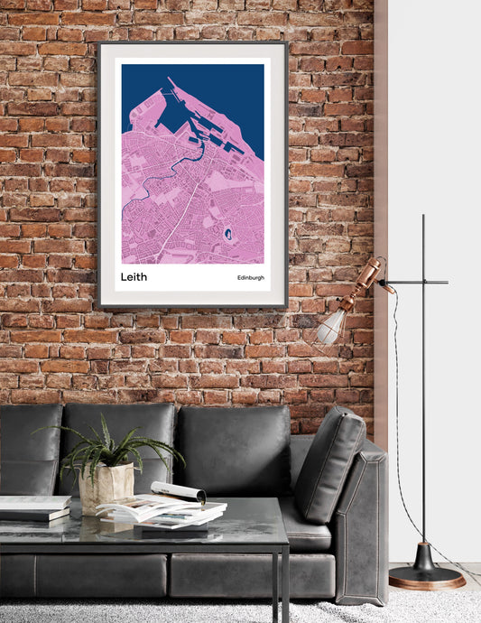 Leith modern minimalist map print poster. Quality colourful poster of island of Leith Edinburgh on quality art paper