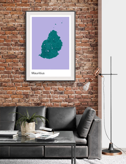Mauritius modern minimalist map print poster. Quality colourful poster of Mauritius on quality art paper