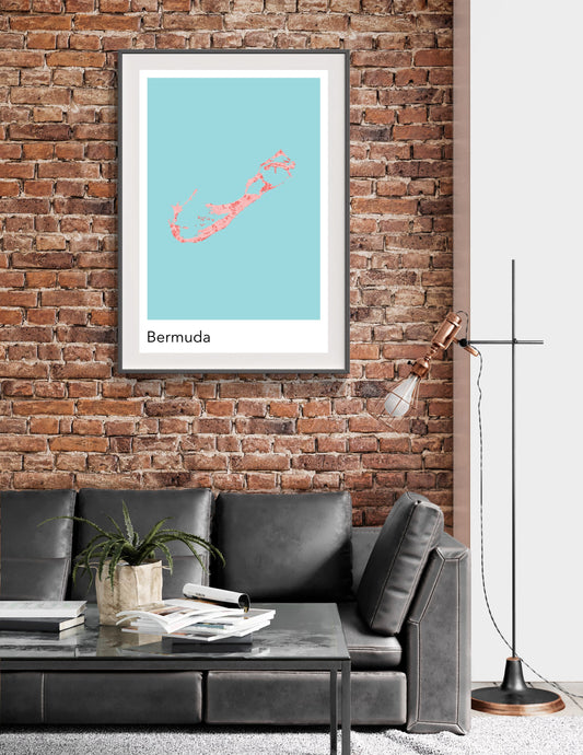 Bermuda modern minimalist map print poster. Quality colourful poster of Bermuda on quality art paper