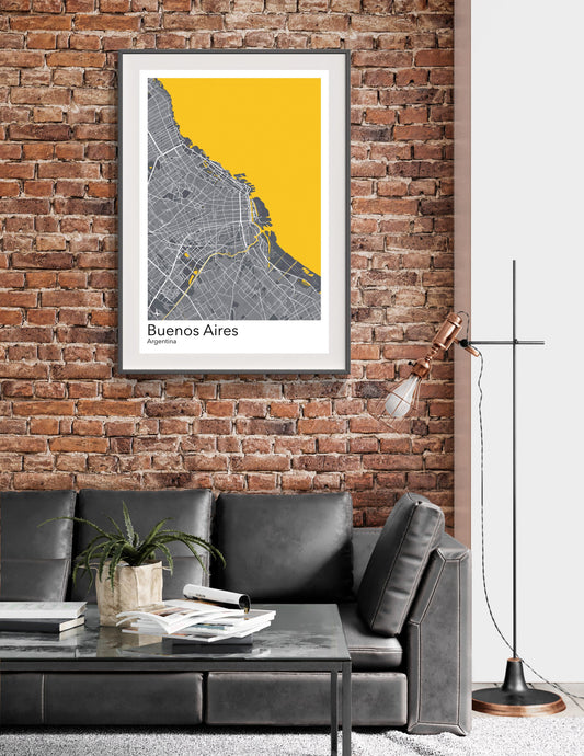 Buenos Aires modern minimalist map print poster. Quality colourful poster of Buenos Aires Argentina on quality art paper