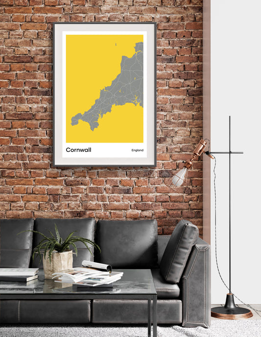 Cornwall modern minimalist map print poster. Quality colourful poster of Cornwall England on quality art paper