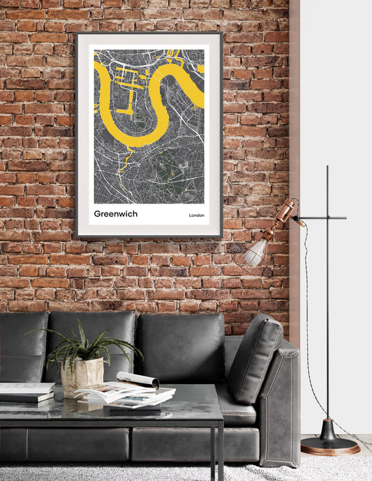 Greenwich modern minimalist map print poster. Quality colourful poster of Greenwich London quality art paper