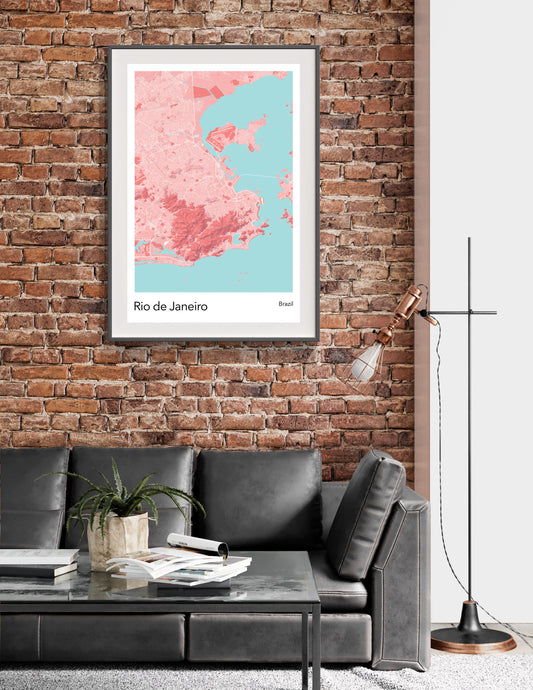 Rio de Janeiro modern minimalist map print poster. Quality colourful poster of Rio de Janeiro Brazil on quality art paper