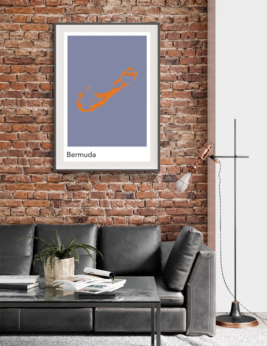 Bermuda modern minimalist map print poster. Quality colourful poster of Bermuda on quality art paper