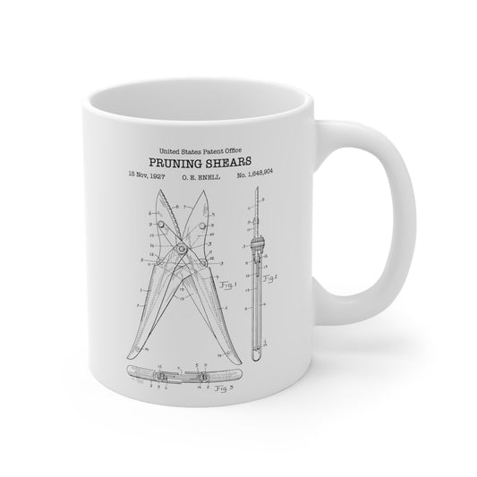 Pruning shears patent from 1927 from the US Patent Office. An 11oz mug perfect as gift for any gardener or garden enthusiast.
