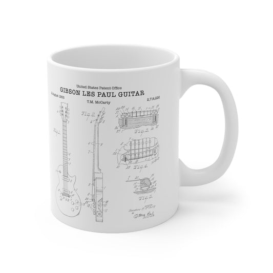 Gibson Les Paul guitar patent from 1953 from the US Patent Office. An 11oz mug perfect as gift for a music lover or guitarist