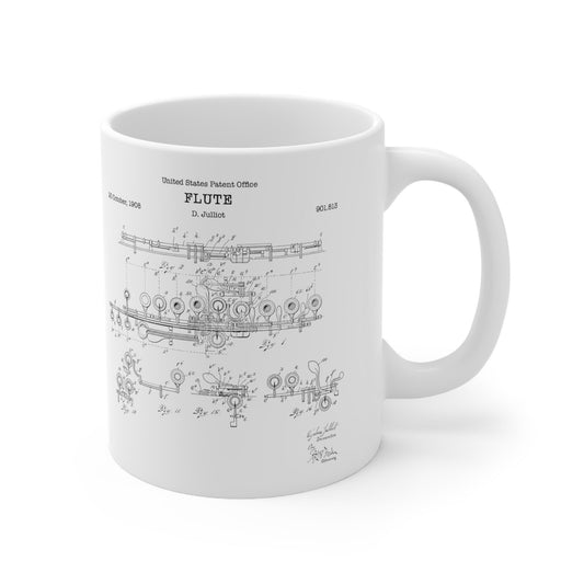 Flute patent from 1908 from the US Patent Office. An 11oz mug perfect as gift for a music lover or flute player