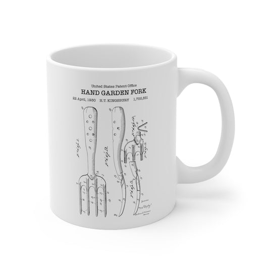 Hand garden fork patent from 1930 from the US Patent Office. An 11oz mug perfect as gift for any gardener or garden enthusiast.