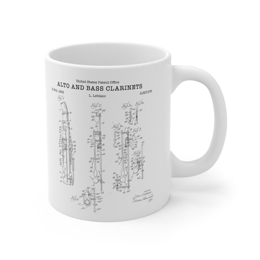 Key mechanism for alto and bass clarinets from 1953 from the US Patent Office. An 11oz mug perfect as gift for a music lover or clarinettist