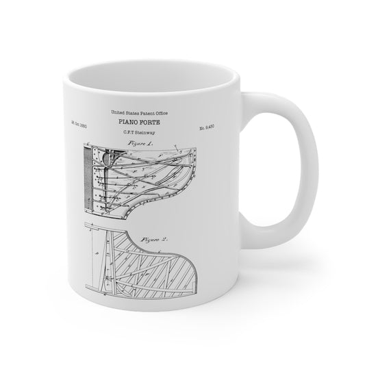 Steinway Grand Piano Patent Mug from US Patent Office. 11oz mug perfect as gift for any pianist, classical musician or music lover