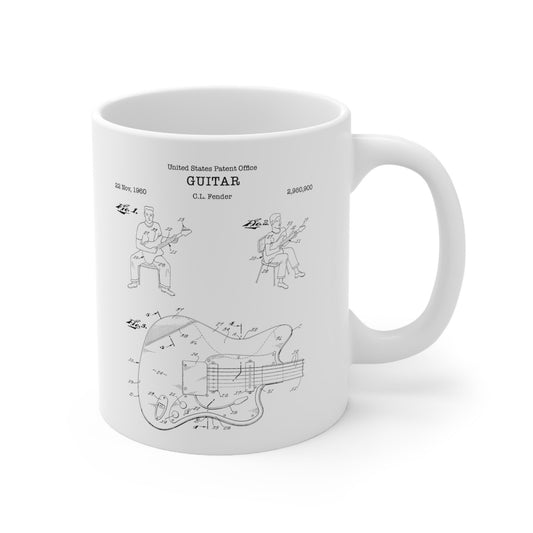 Fender guitar patent from 1960 from the US Patent Office. An 11oz mug perfect as gift for any guitarist or music lover