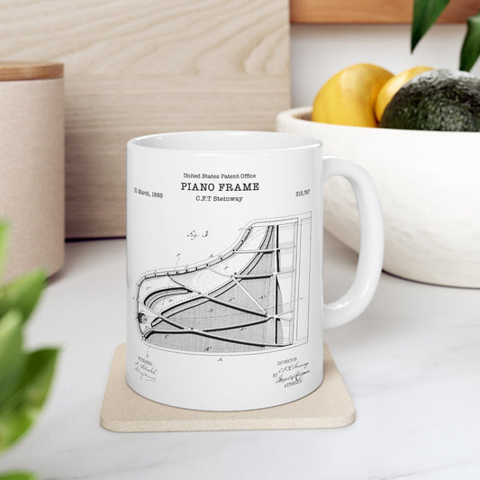 Steinway piano patent from 1885 from the US Patent Office. An 11oz mug perfect as gift for a music lover or any piano player
