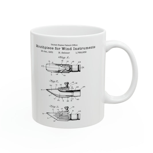 Mouthpiece for woodwind instruments by Selmer patent design from the US Patent Office. Perfect gift for any clarinet player clarinettist