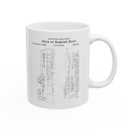 Oboe or English horn musical instrument patent design from the US Patent Office. Perfect gift for any oboist musician music lover player